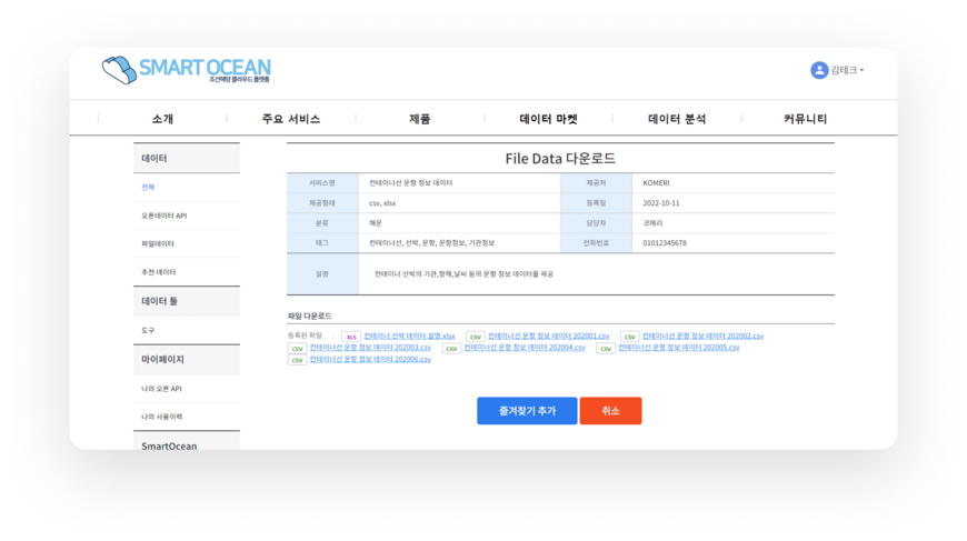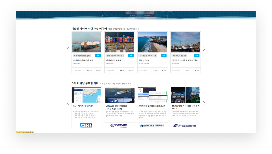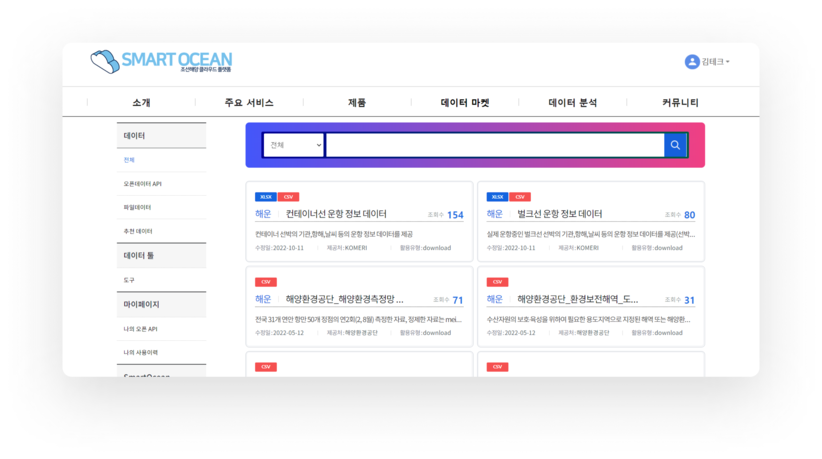 다양한 기관에서 독립적으로 제공하는 해양 관련 오픈데이터 정보를 통합 및 분류하여 서비스를 제공합니다. 데이터 마켓을 통해 오픈데이터를 찾으면 다수의 사이트를 방문해야 하는 번거로움이 줄어듭니다. 또한 해양 관련 다양한 분류체계를 제공하면서 오픈데이터 정보의 접근성을 높입니다.