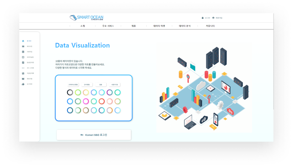 다양한 데이터 포맷으로 코드 및 노코드 방식으로손쉽게 데이터 시각화를 이용할 수 있는 웹 어플리케이션 입니다. 간단한 드래그드롭 마우스 클릭을 통해 배우지 않아도 간편하게 설정 할 수있습니다